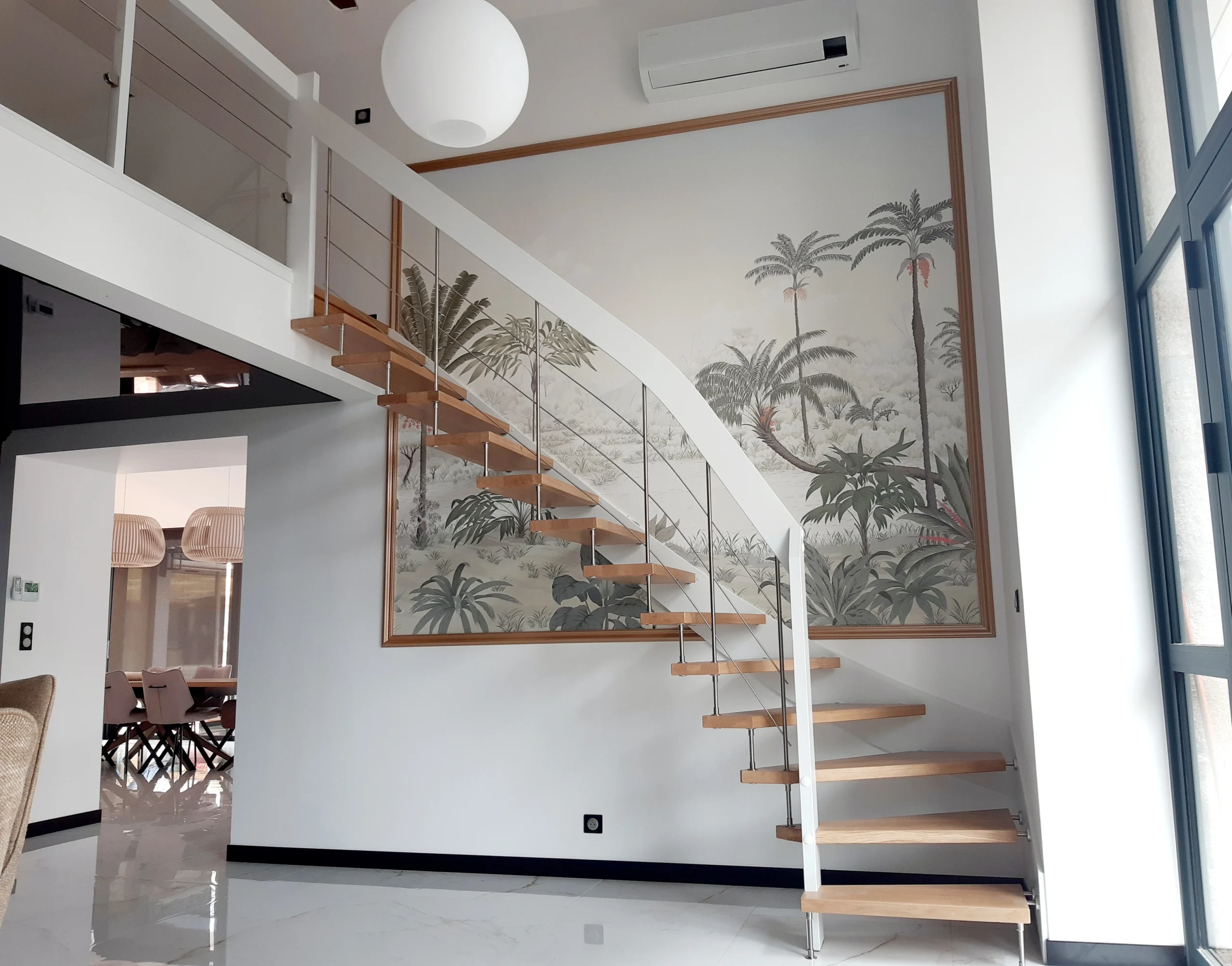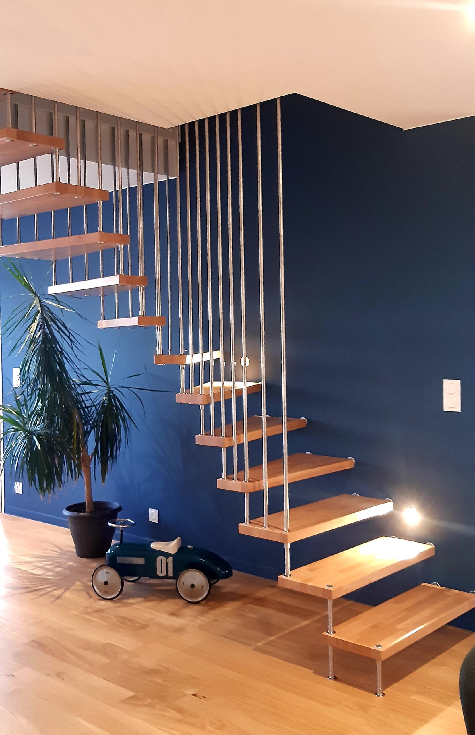 Grâce à une main courante fine en inox et des marches en bois personnalisables, le modèle Jet est un escalier suspendu qui ira à ravir avec les intérieurs contemporains de Vendée (85). Véritable bijoux technologique, ce modèle d’escalier permet de lier le charme des escaliers suspendus à l’élégance et de la légèreté d’une main courante en inox.
