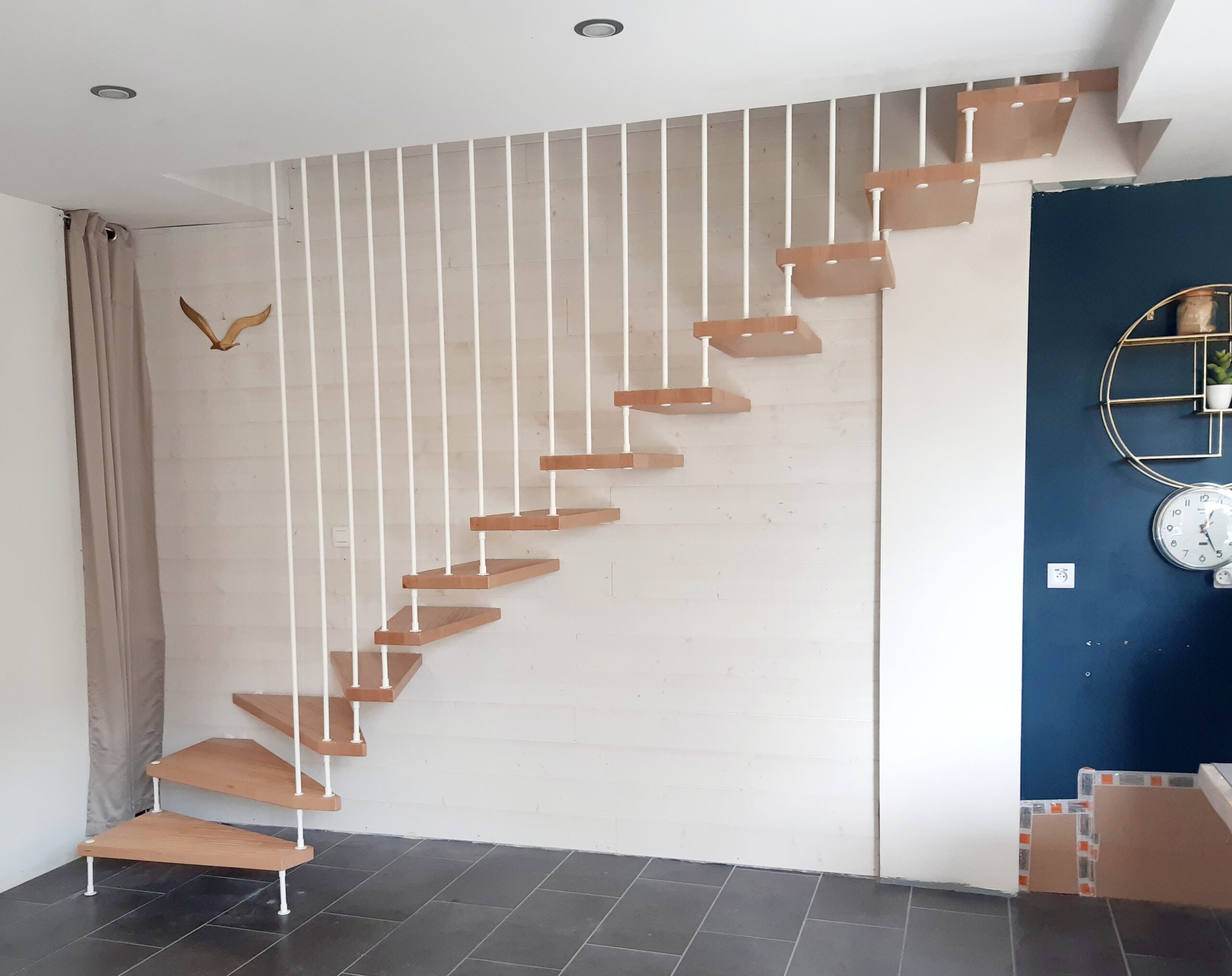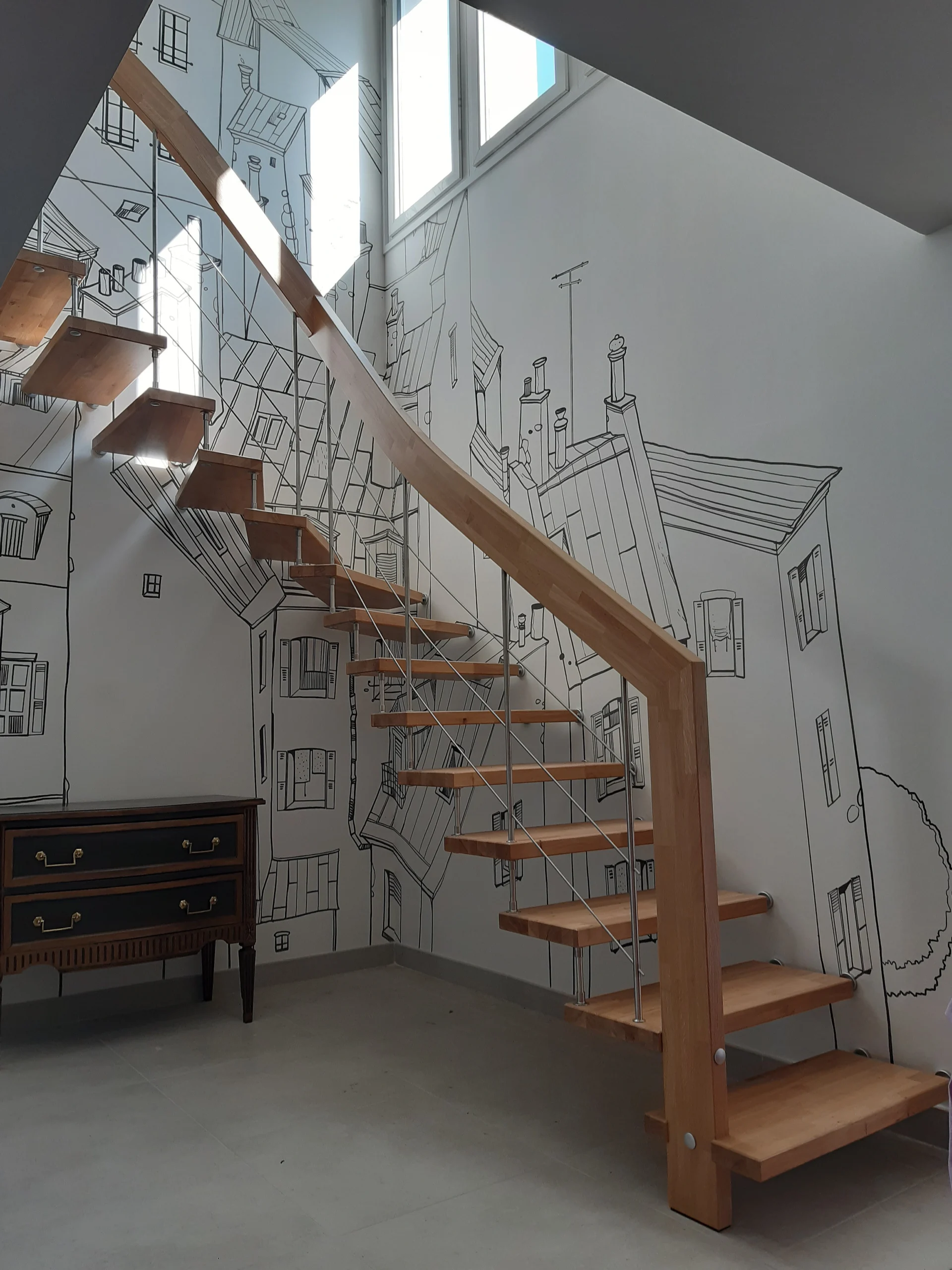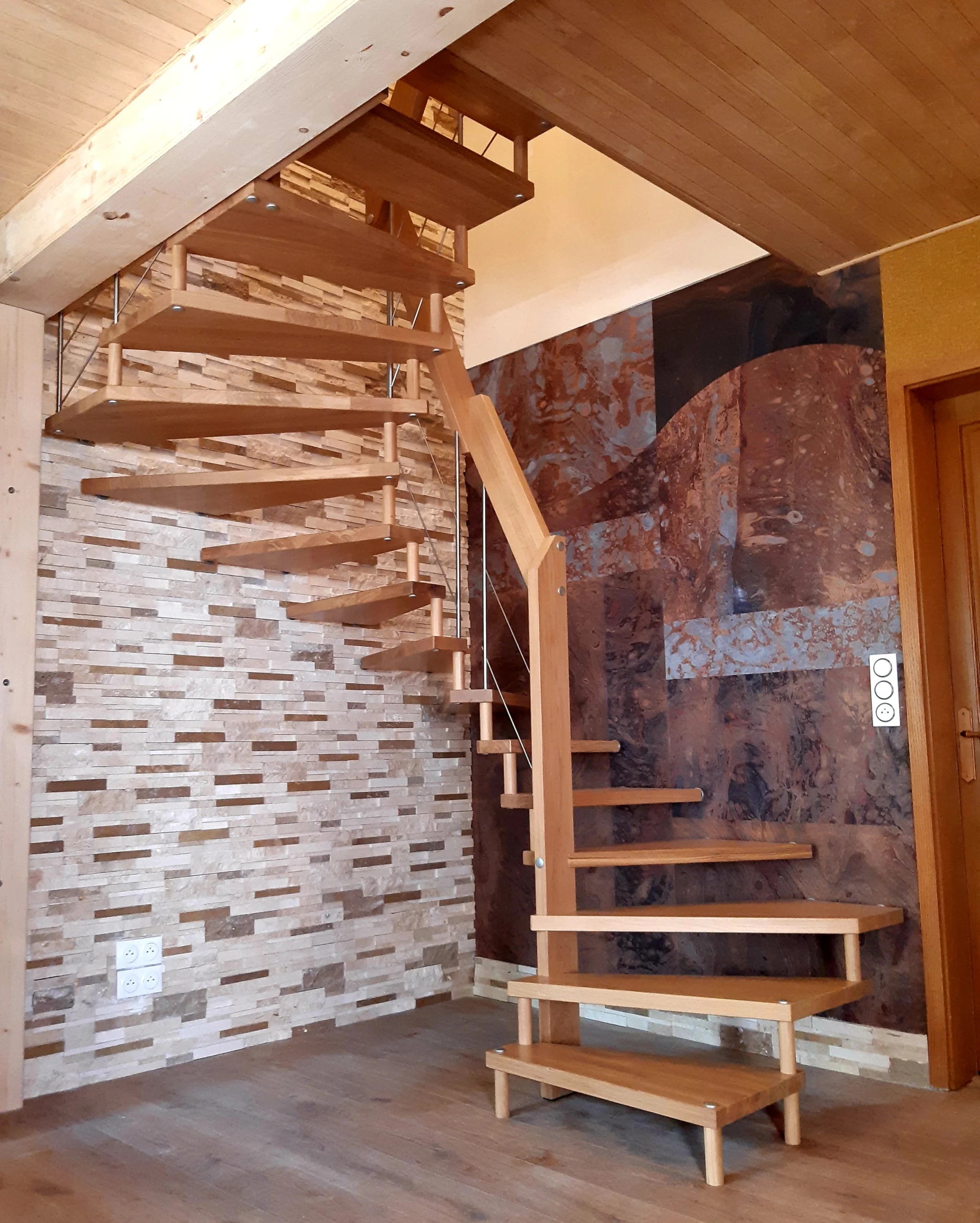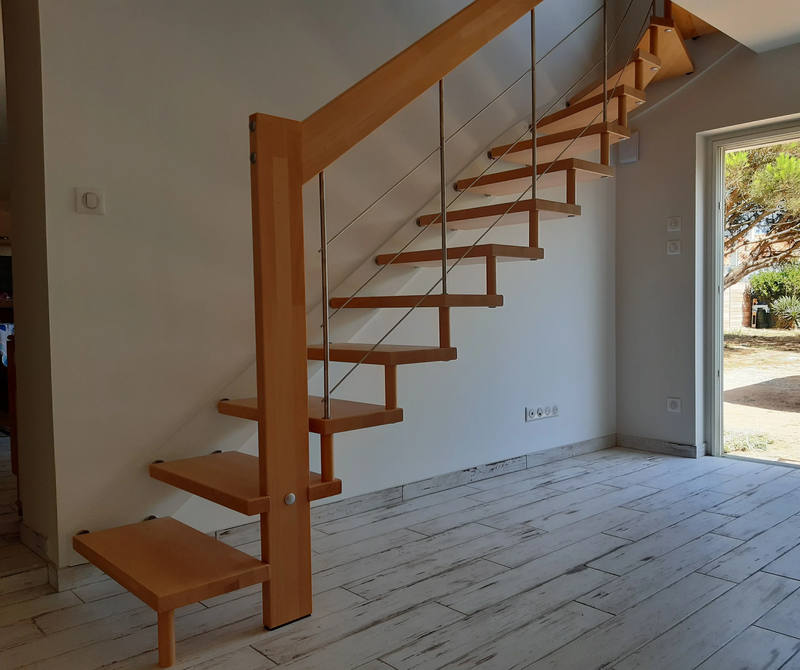 Avec sa structure apparente et ses marches en bois massif, Viva offre un aspect aérien et léger tout en garantissant une solidité incomparable. Disponible dans plusieurs finitions, avec ou sans main courante, il s’adapte à vos envies pour créer une ambiance personnalisée et chaleureuse.
