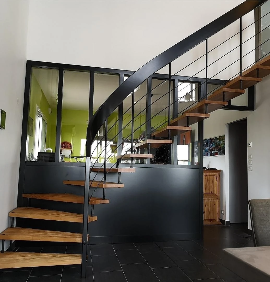 En fonction des contraintes d’aménagement de votre logement, nous concevons et fabriquons votre escalier sur-mesure de la forme de votre choix en Vendée (85) ; droit, un quart tournant, deux quarts tournant, hélicoïdal, etc.